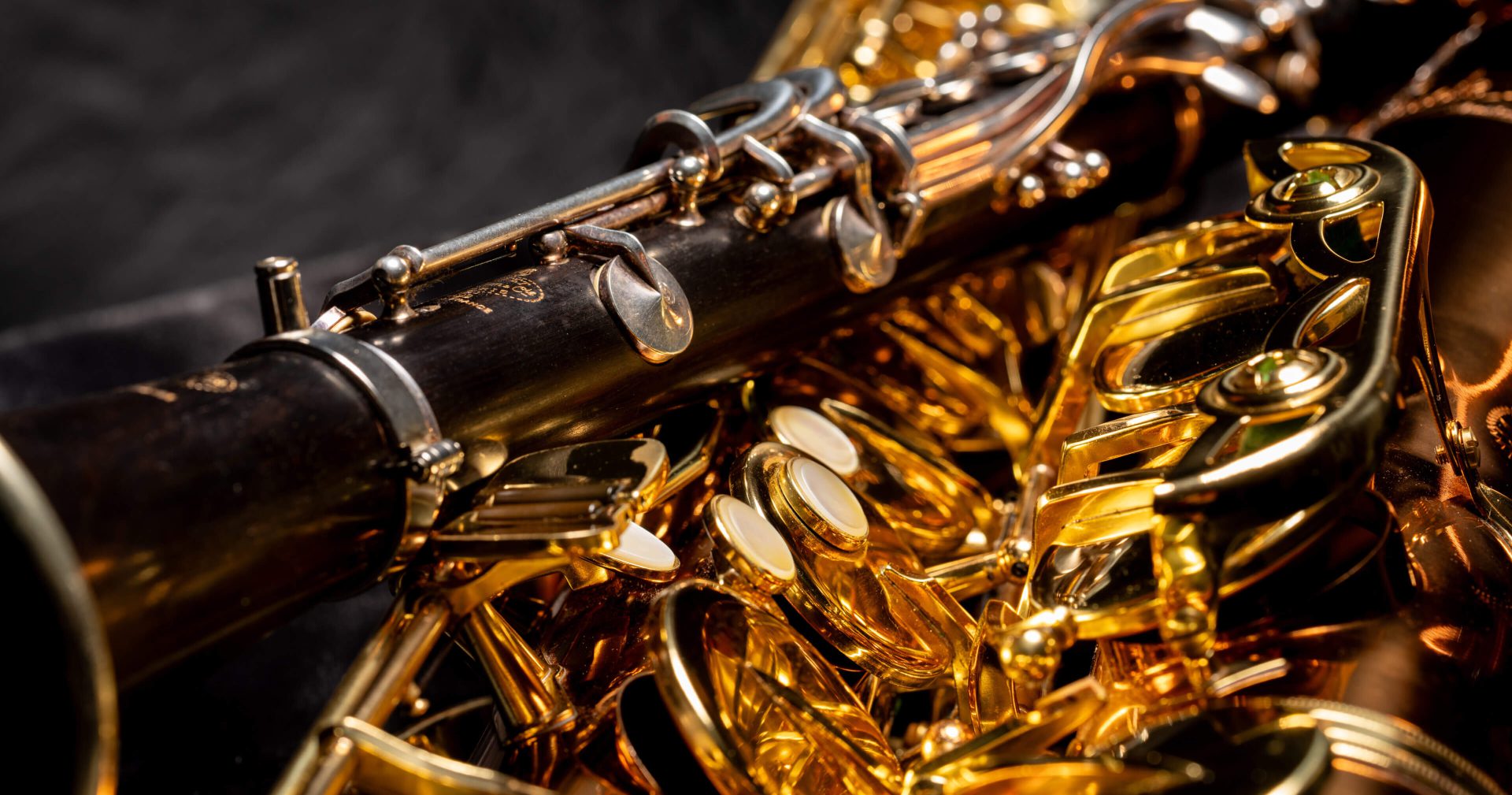 Weiße Klarinette schräg von oben links nach unten rechts auf transparentem Hintergrund